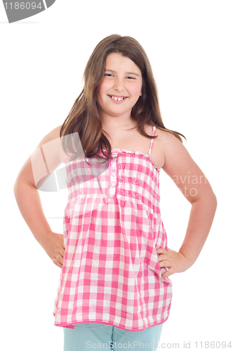 adorable little girl portrait smiling in a pink top (isolated on white background)