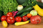 Colorful choice of vegetables: tomatos, onion, zucchini, lettuce, radish and parsley