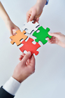 Group of business people assembling jigsaw puzzle and represent team support and help concept
