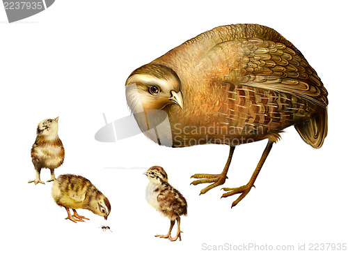 Grey Partridge, Perdix perdix, little chicks, Isolated on white