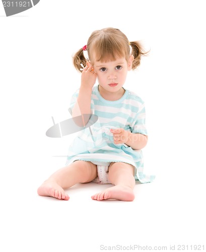 picture of little girl with cotton sticks over white