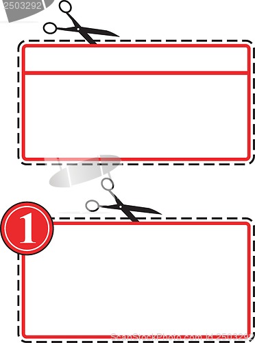 Illustration of discount coupon being cut with a pair of scissors on dotted line on isolated white background