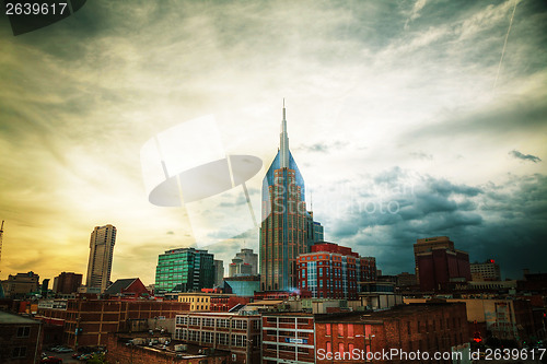 NASHVILLE - MAY 2: Downtown Nashville cityscape in the evening on May 2, 2013 in Nashville, TN. Nashville is the capital of the State of Tennessee and the county seat of Davidson County.