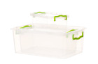 Plastic container for foodstuffs, isolated on white background