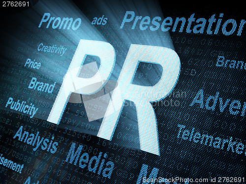Pixeled word PR on digital screen 3d render