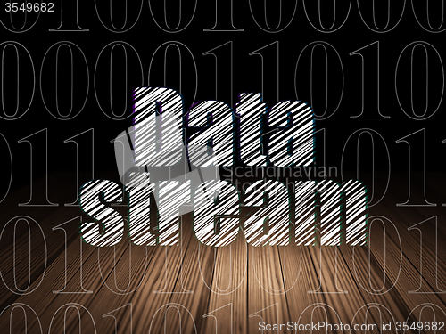 Data concept: Glowing text Data Stream in grunge dark room with Wooden Floor, black background with Binary Code