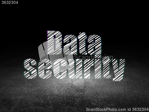 Privacy concept: Glowing text Data Security in grunge dark room with Dirty Floor, black background