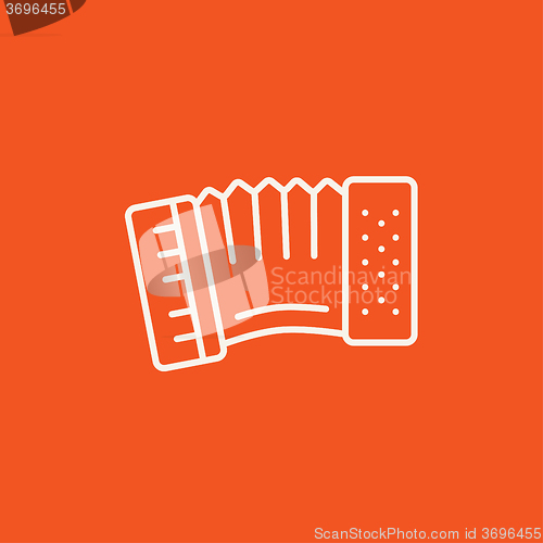 Accordion line icon for web, mobile and infographics. Vector white icon isolated on red background.