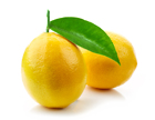 fresh ripe lemons with green leaf isolated on white background