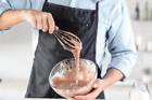 A cook on a rustic kitchen. The male hands with ingredients for cooking flour products or dough,,bread, muffins, pie, cake, pizza