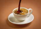 cup of pouring coffee on brown background