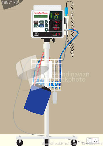 A Hospital Vital Sign Monitor on Trolley with BP Cuff and Thermometer