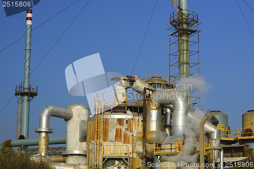 Factory emitting smoke on a bright sunny day