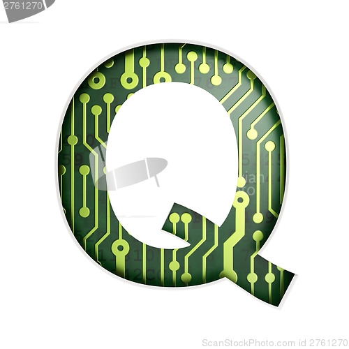 Electric curcuit board letters and numbers collection: Q isolated on white background, 3D render