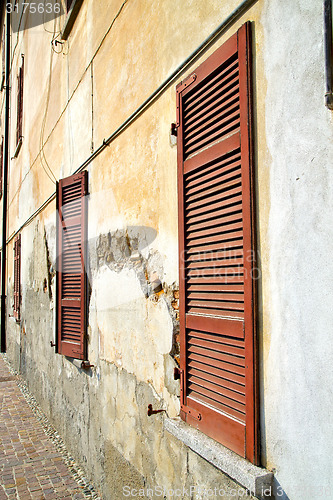 red window varano borghi palaces italy abstract sunny day wood venetian blind in the concrete brick \r