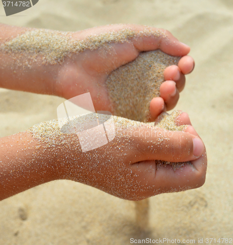The sand flows out of the hands