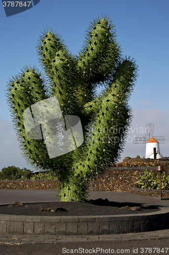 plastic cactus windmills in isle of lanzarote africa spain and the sky \r