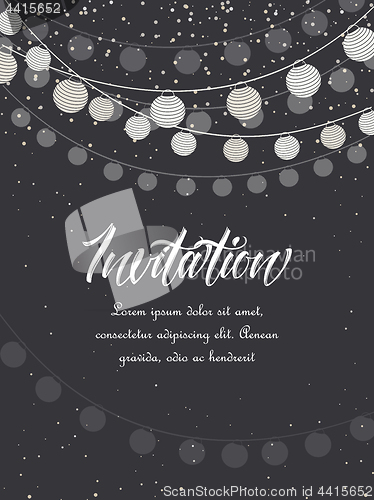 Vector illustration of trees with leaves and chain of lanterns. Invitation card, party celebration.