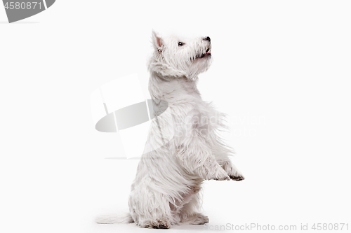Image of west highland terrier in front of white background
